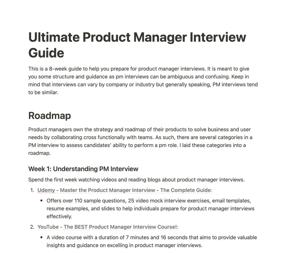 This is a 8-week guide to help you prepare for product manager interviews. It is meant to give you some structure and guidance as pm interviews can be ambiguous and confusing. Keep in mind that interviews can vary by company or industry but generally speaking, PM interviews tend to be similar.